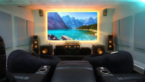 O home theater tem tudo a ver com a criação de um ambiente imersivo – com o posicionamento correto dos alto-falantes, você tem a sensação de que o som está vindo de todas as direções, criando uma experiência hiper-realista.